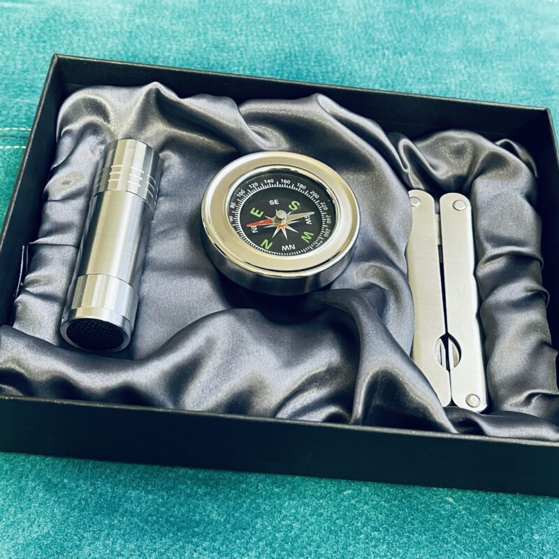 Kinkekomplekt multitööriista, taskulambi ja kompassiga. Taskulambile vajalikud patareid: AAA 3x (ei sisaldu komplektis)