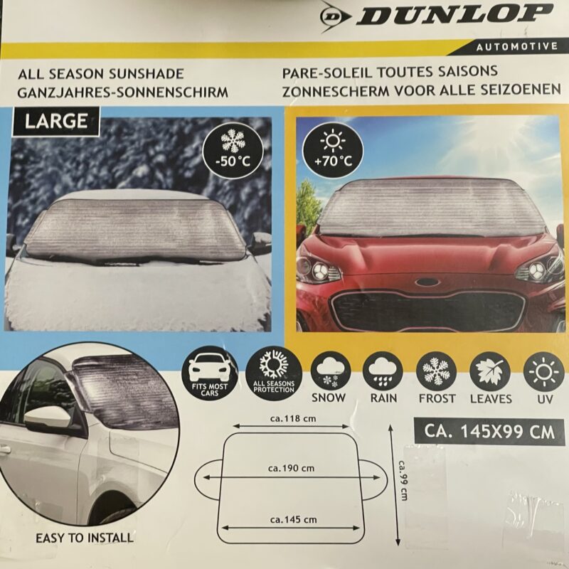 Auto esiklaasi kate. Tuuleklaasi katte suurus: 150 x 115 cm, küljeaknad: 95 x 50 cm. See ei külmu ega kõvene külmas. Sobib peaaegu kõigile sõiduautodele. Katab esiklaasi ja esiaknad. Lihtne kasutada.