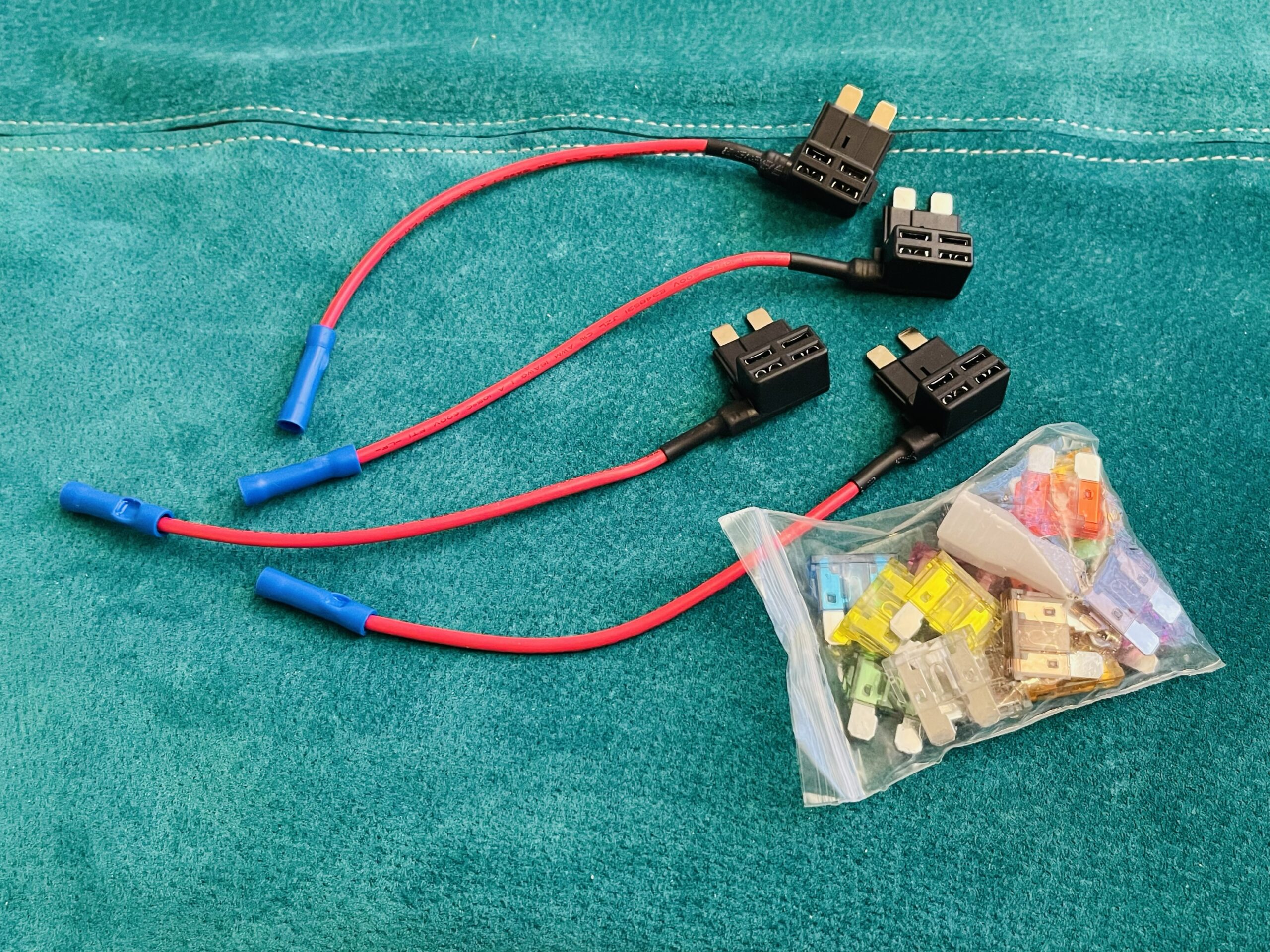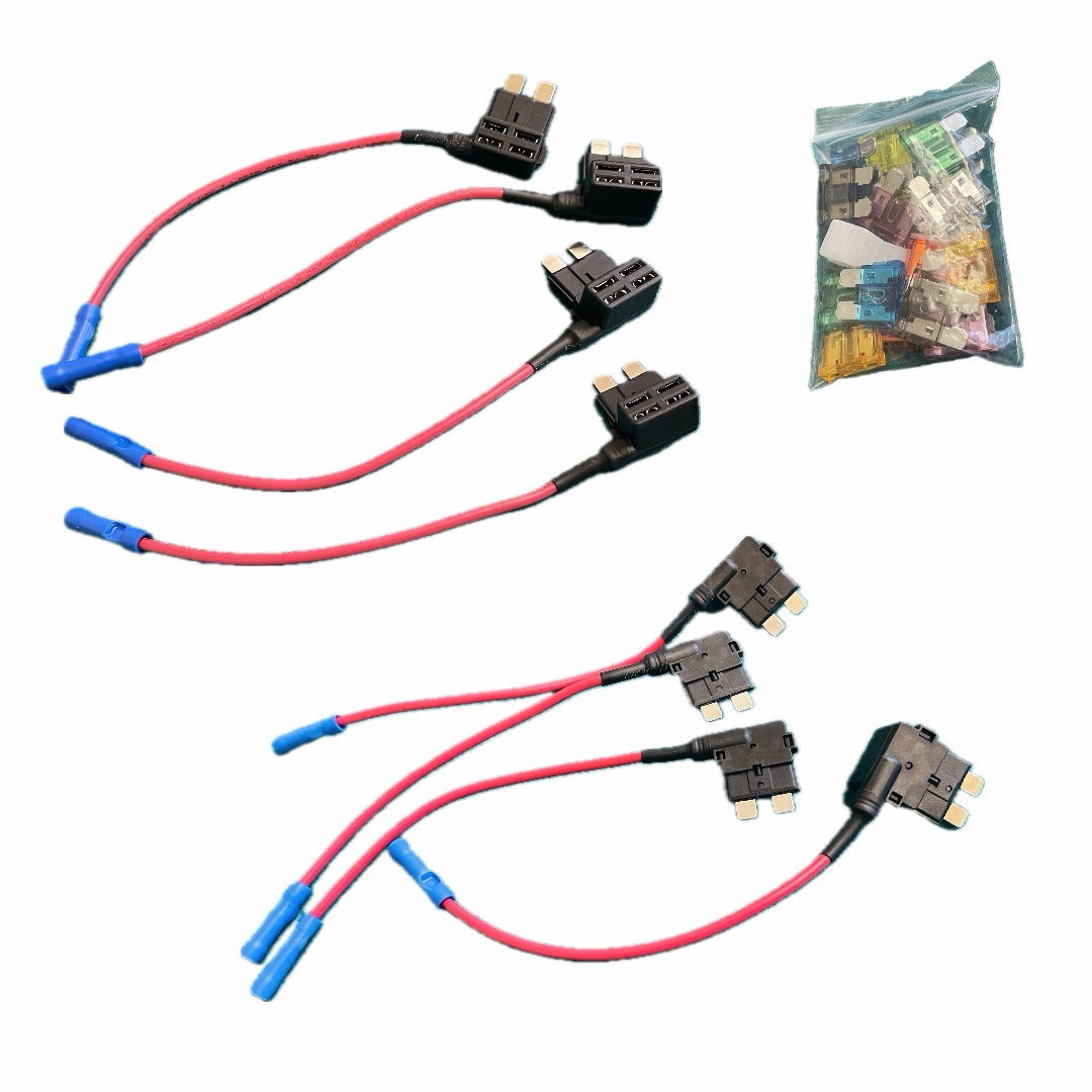 Adapterite komplekt voolu võtmiseks / ühendamiseks kaitsmekarbist. Komplektis 4 adapterit ja pakk kahvelkaitsmeid.