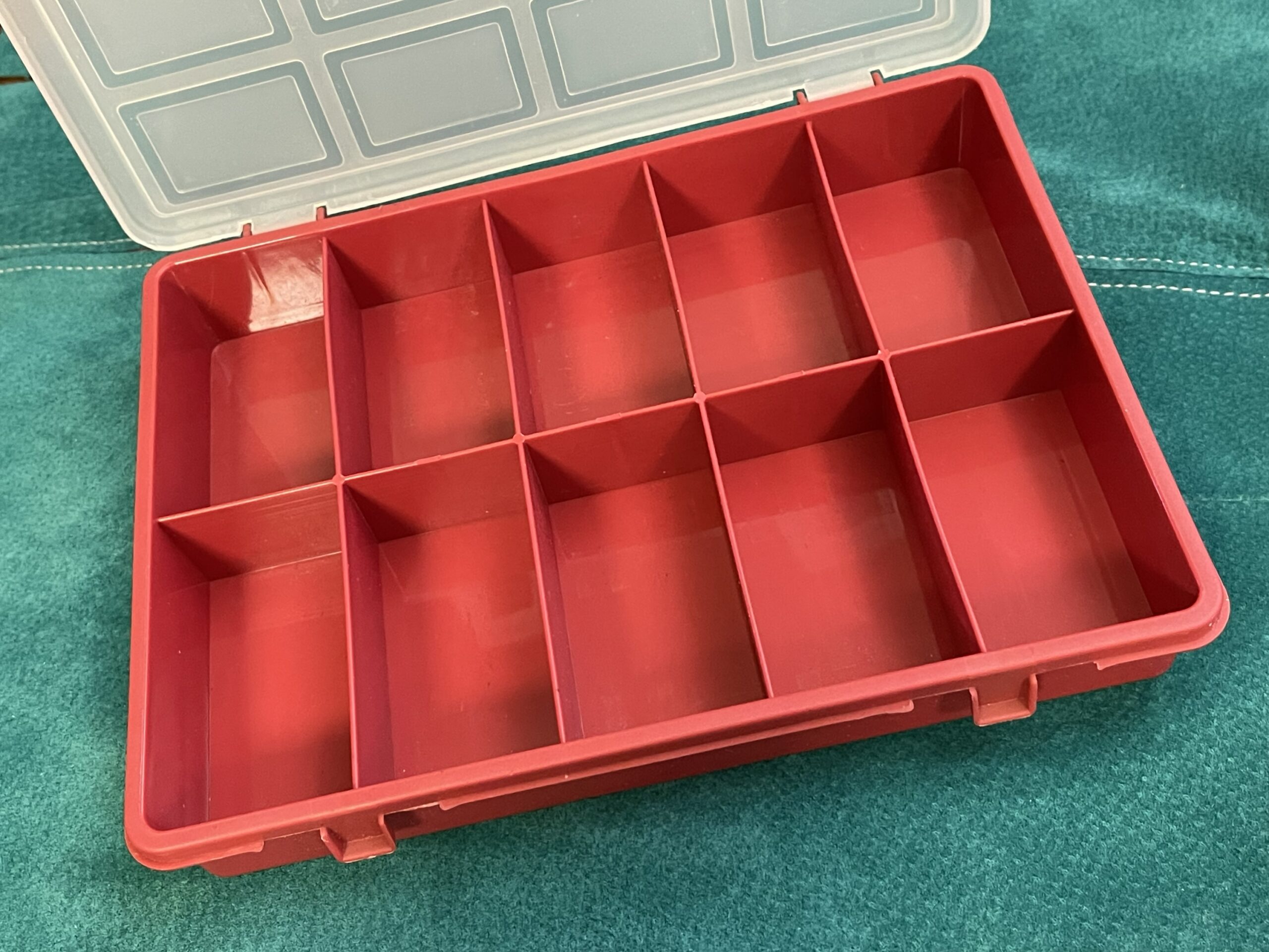 24 x 18 x 4 cm. hoiukarp 10 lahtriga 8 x 4,5 x 3 cm. Sobilik igasugu väiksemate vidinate hoiustamiseks.