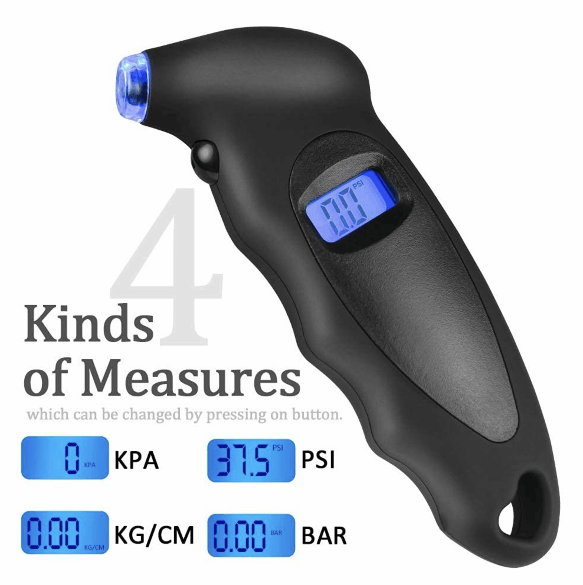 Valgustusega digitaalne rehvirõhu manomeeter